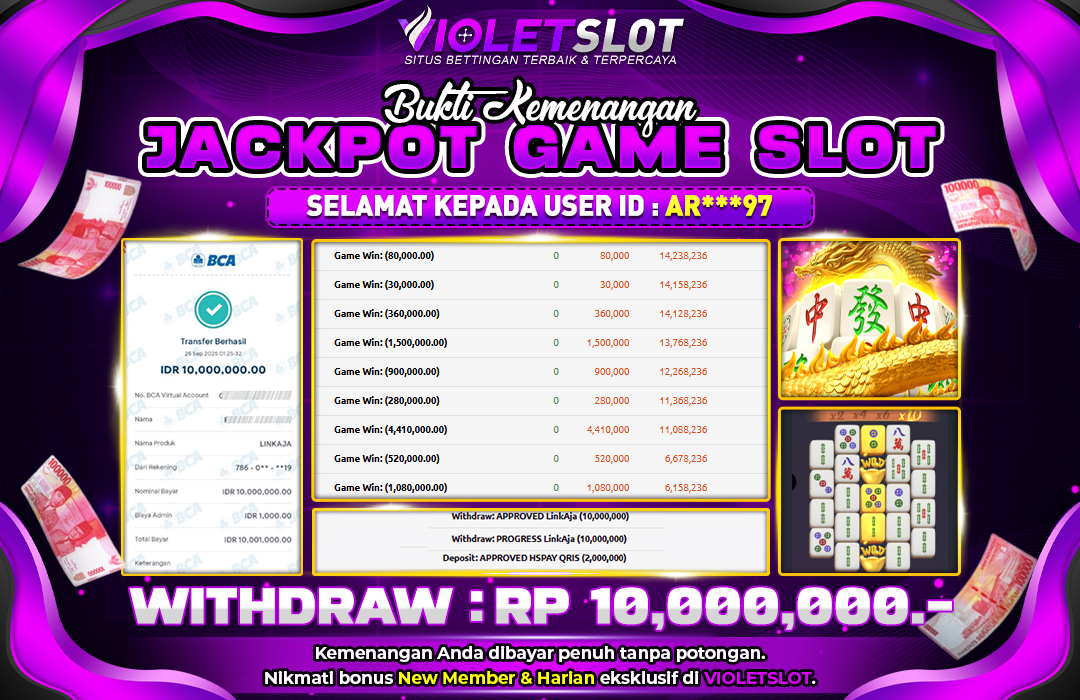 Halo para penggemar judi online di Indonesia! Jika Anda sedang mencari bandar judi terpercaya VIOLETSLOT menghadirkan pengalaman judi yang gacor dan amanah, Anda telah datang ke tempat yang tepat. Pada blog post kali ini, kami akan memberikan panduan lengkap memilih bandar judi terpercaya dan memberikan tips untuk bermain dengan aman. Mari kita mulai!