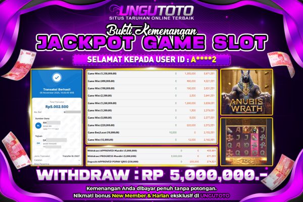 UNGUTOTO | BUKTI PEMENANG SLOT PGSOFT ANUBIS WRATH TANGGAL 05 NOVEMBER 2025 RP. 5,000,000,. LUNAS