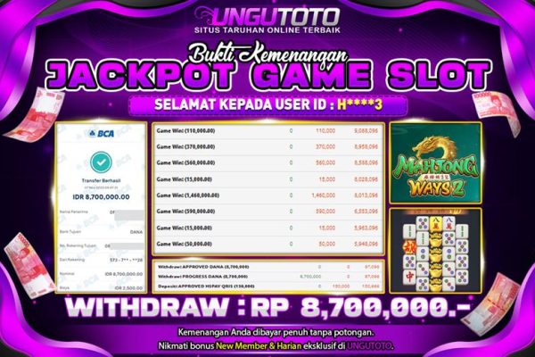 BUKTI WD TERBARU GAME : WILD BOUNTY SHOWDOWN DEPOSIT : 74.000.- WITHDRAW : 8.000.000.- UNGUTOTO BANDAR JUDI TERPERCAYA BERIKUT PANDUAN CARA BERMAIN DENGAN AMAN Halo para penggemar judi online di Indonesia! Jika Anda sedang mencari bandar judi terpercaya UNGUTOTO menghadirkan pengalaman judi yang gacor dan amanah, Anda telah datang ke tempat yang tepat. Pada…