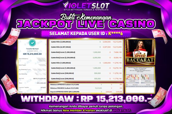 VIOLETSLOT | BUKTI PEMENANG LIVE CASINO SPEED BACCARAT TANGGAL 13 OKTOBER 2025 RP. 9,823,000,. LUNAS