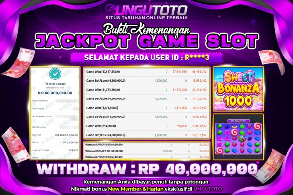 UNGUTOTO | BUKTI PEMENANG SLOT PRAGMATIC SWEET BONANZA 1000 TANGGAL 13 NOVEMBER 2025 RP. 40,000,000,. LUNAS