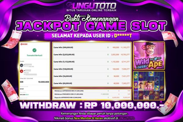 UNGUTOTO | BUKTI PEMENANG SLOT PG SOFT WILD APE #3258 TANGGAL 10 NOVEMBER 2025 RP. 10,000,000,. LUNAS
