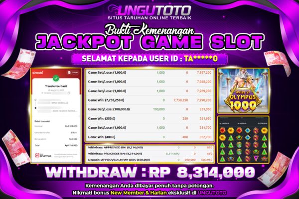 BUKTI WD TERBARU GAME : GATES OF OLYMPUS 1000 DEPOSIT : 500.000.- WITHDRAW : 8.314.000.- UNGUTOTO BANDAR JUDI TERPERCAYA BERIKUT PANDUAN CARA BERMAIN DENGAN AMAN Halo para penggemar judi online di Indonesia! Jika Anda sedang mencari bandar judi terpercaya UNGUTOTO menghadirkan pengalaman judi yang gacor dan amanah, Anda telah datang ke tempat yang tepat….
