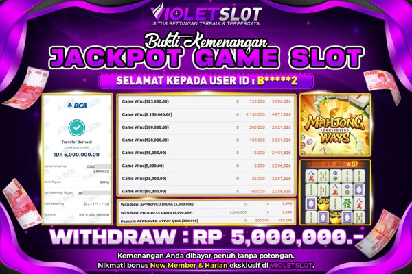 BUKTI WD TERBARU GAME : MAHJONG WAYS 2 DEPOSIT : 2,000,000.- WITHDRAW : 11,029,000.- VIOLETSLOT BANDAR JUDI TERPERCAYA BERIKUT PANDUAN CARA BERMAIN DENGAN AMAN Halo para penggemar judi online di Indonesia! Jika Anda sedang mencari bandar judi terpercaya VIOLETSLOT menghadirkan pengalaman judi yang gacor dan amanah, Anda telah datang ke tempat yang tepat. Pada…