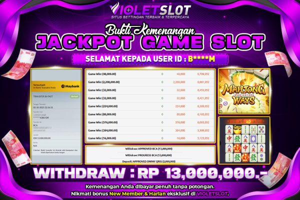 BUKTI WD TERBARU GAME : WILD BOUNTY SHOWDOWN DEPOSIT : 1,000,000.- WITHDRAW : 10,000,000.- VIOLETSLOT BANDAR JUDI TERPERCAYA BERIKUT PANDUAN CARA BERMAIN DENGAN AMAN Halo para penggemar judi online di Indonesia! Jika Anda sedang mencari bandar judi terpercaya VIOLETSLOT menghadirkan pengalaman judi yang gacor dan amanah, Anda telah datang ke tempat yang tepat. Pada…