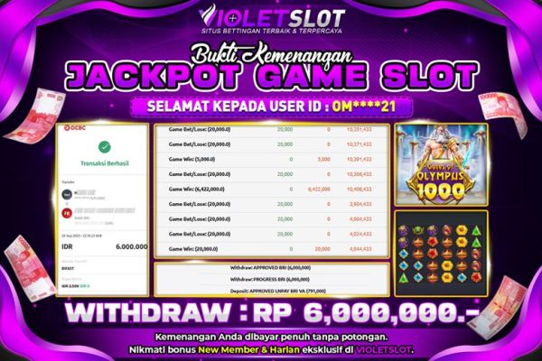 BUKTI WD TERBARU GAME : GATES OF OLYMPUS 1000 DEPOSIT : 100,000.- WITHDRAW : 5,060,000.- VIOLETSLOT BANDAR JUDI TERPERCAYA BERIKUT PANDUAN CARA BERMAIN DENGAN AMAN Halo para penggemar judi online di Indonesia! Jika Anda sedang mencari bandar judi terpercaya VIOLETSLOT menghadirkan pengalaman judi yang gacor dan amanah, Anda telah datang ke tempat yang tepat….