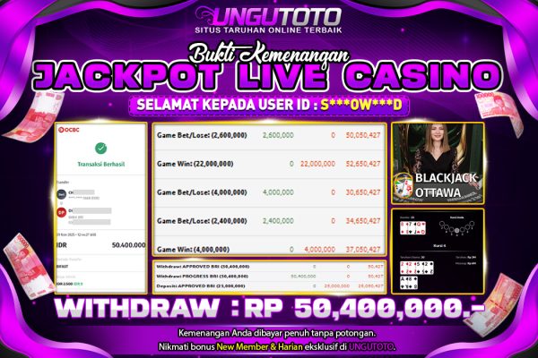UNGUTOTO | BUKTI PEMENANG LIVE CASINO BLACKJACK OTTAWA TANGGAL 09 NOVEMBER 2025 RP. 50,400,000,. LUNAS