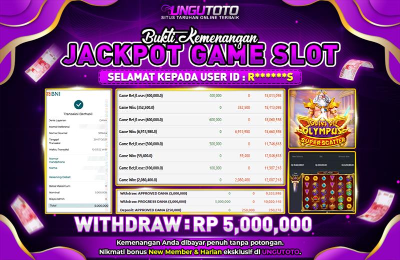 UNGUTOTO | BUKTI PEMENANG PRAGMATIC GATES OF OLYMPUS SUPER SCATTER UNGUTOTO 29 JULY 2025 RP. 5.000.000,- LUNAS