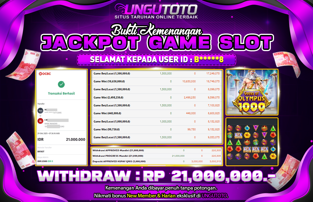 UNGUTOTO | BUKTI PEMENANG PRAGMATIG GATES OF OLYMPUS SUPER SCATTER UNGUTOTO 07 JULY 2025 RP. 9.700.000,- LUNAS