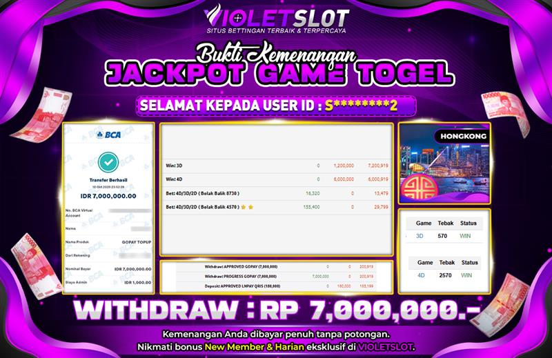 VIOLETSLOT | BUKTI JACKPOT TOGEL HONGKONG LOTTO | DIBAYAR LUNAS