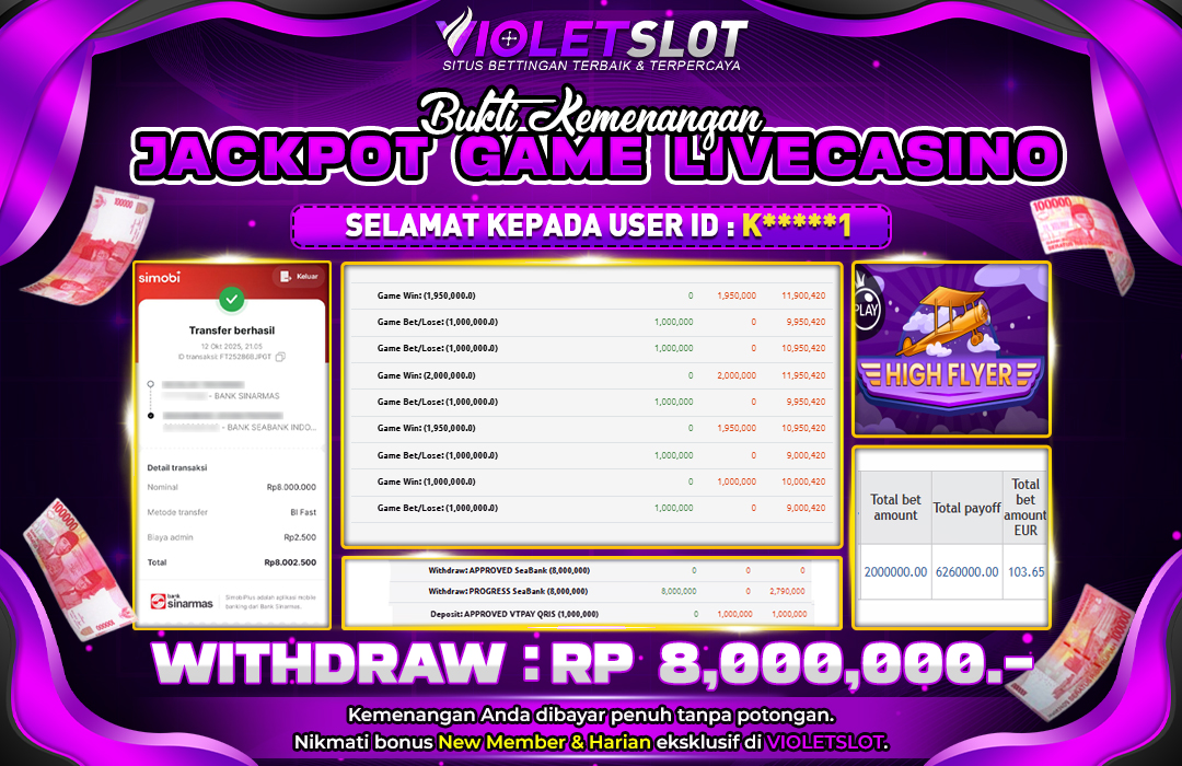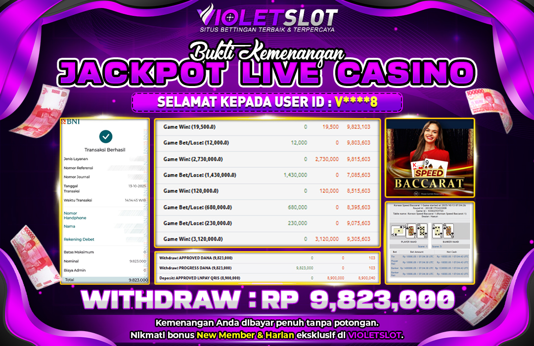 VIOLETSLOT | BUKTI PEMENANG LIVE CASINO SPEED BACCARAT TANGGAL 13 OKTOBER 2025 RP. 9,823,000,. LUNAS